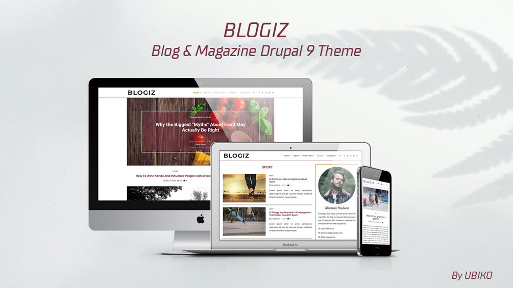 BLOGIZ is a modern, clean and fully responsive blogging Drupal 9 theme, perfect for magazines, news or anyone who wants to start their own blog.